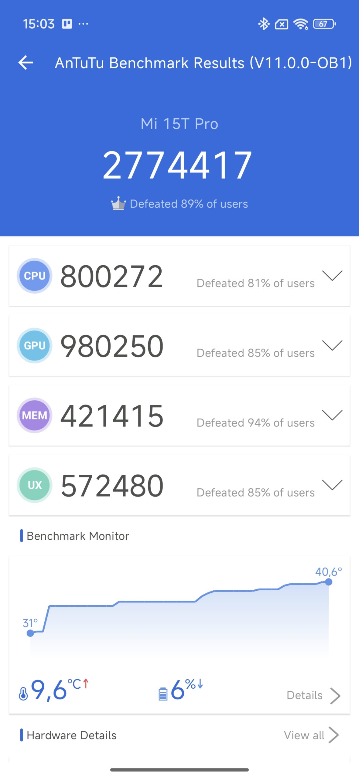 A co to znamená v praxi? Na běžný chod telefonu to bohatě stačí, stejně jako na pohánění AI funkcí. Také veškeré hry, včetně těch nejnáročnějších, si zahrajete na vysoké detaily. Výkon je prakticky neomezený a Xiaomi 15T Pro zvládá vlastně vše na jedničku.